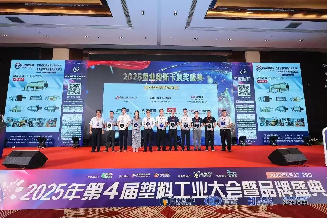 On August 27—29, the 2025 4th Plastic Industry Conference and Brand Ceremony, hosted by the Guangdong Plastic Industry Association and co-organized by Hurricane Plastic Media (Guangdong Plastic Industry Association Information Center) and Wansu Media, was grandly held in Foshan, Guangdong. Zhejiang Shouli Intelligent Equipment Co., Ltd. was invited to attend the summit Its brand “SONLY” Injection Molding Machine has stored out from 965 companies in the entire industry chain with its technical innovation strength, market reputation and brand influence, and was awarded the title of “Outstanding Influential Brand of Injection Molding Machine”!